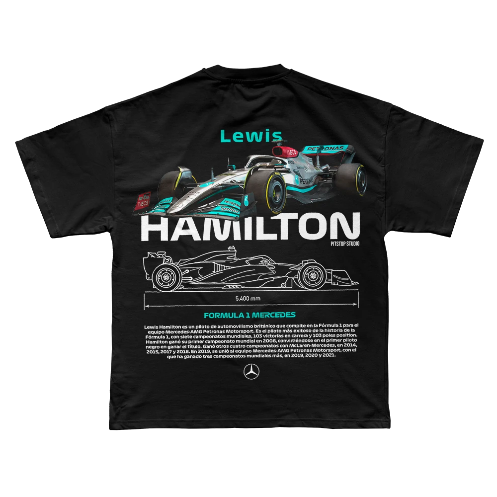 Formula 1 efsanesi Lewis Hamilton için hazırlanan bu özel tasarım tişört, Mercedes-AMG Petronas F1 aracının yüksek kaliteli baskısıyla dikkat çekiyor. Arka yüzeyde yer alan teknik çizim ve araç ölçü detayları, yarış ruhunu stilinize taşıyor. Dinamik tasarımıyla sokak modasına ve motorsporları tutkusuna hitap eden bu tişört, hem konforlu hem de koleksiyonluk bir parça.